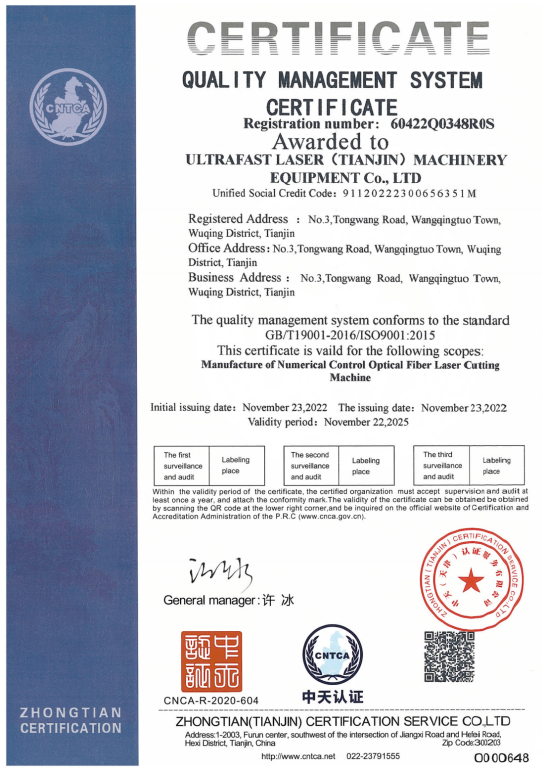 超快激光擁有一支專業(yè)從事激光切割設(shè)備研發(fā)設(shè)計(jì)的強(qiáng)大技術(shù)團(tuán)隊(duì),獲得多項(xiàng)實(shí)用型設(shè)計(jì)專利,已通過ISO9001質(zhì)量管理體系認(rèn)證證書,并且獲得國家頒發(fā)的高新技術(shù)企業(yè)證書。